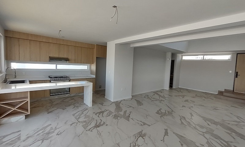 En planta baja se encuentra el área social con sala y comedor de gran tamaño, integrados con una cocina equipada que facilita la convivencia familiar.